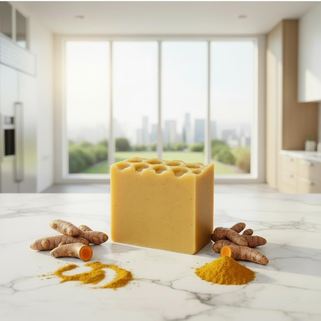 We infused organic turmeric with a comforting herbal-spice blend clove, lemon, cinnamon bark, eucalyptus, and rosemary essential oils for a bar that feels warming, grounding, and deeply cleansing without being harsh.